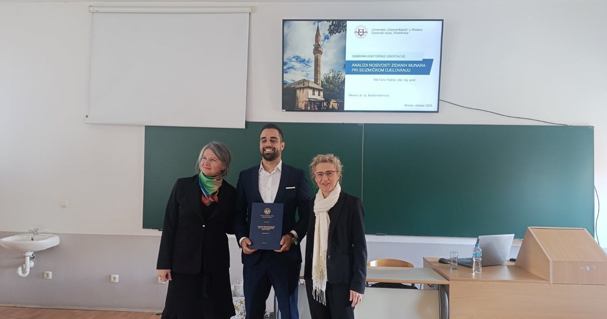 Kandidat doktorskog studija "Politehnika" mr. Faris Trešnjo je dana 27. oktobra 2025. godine uspješno odbranio doktorsku disertaciju pod naslovom "Analiza nosivosti zidanih munara pri seizmičkom djelovanju" i time ispunio zakonske uslove za sticanje ...